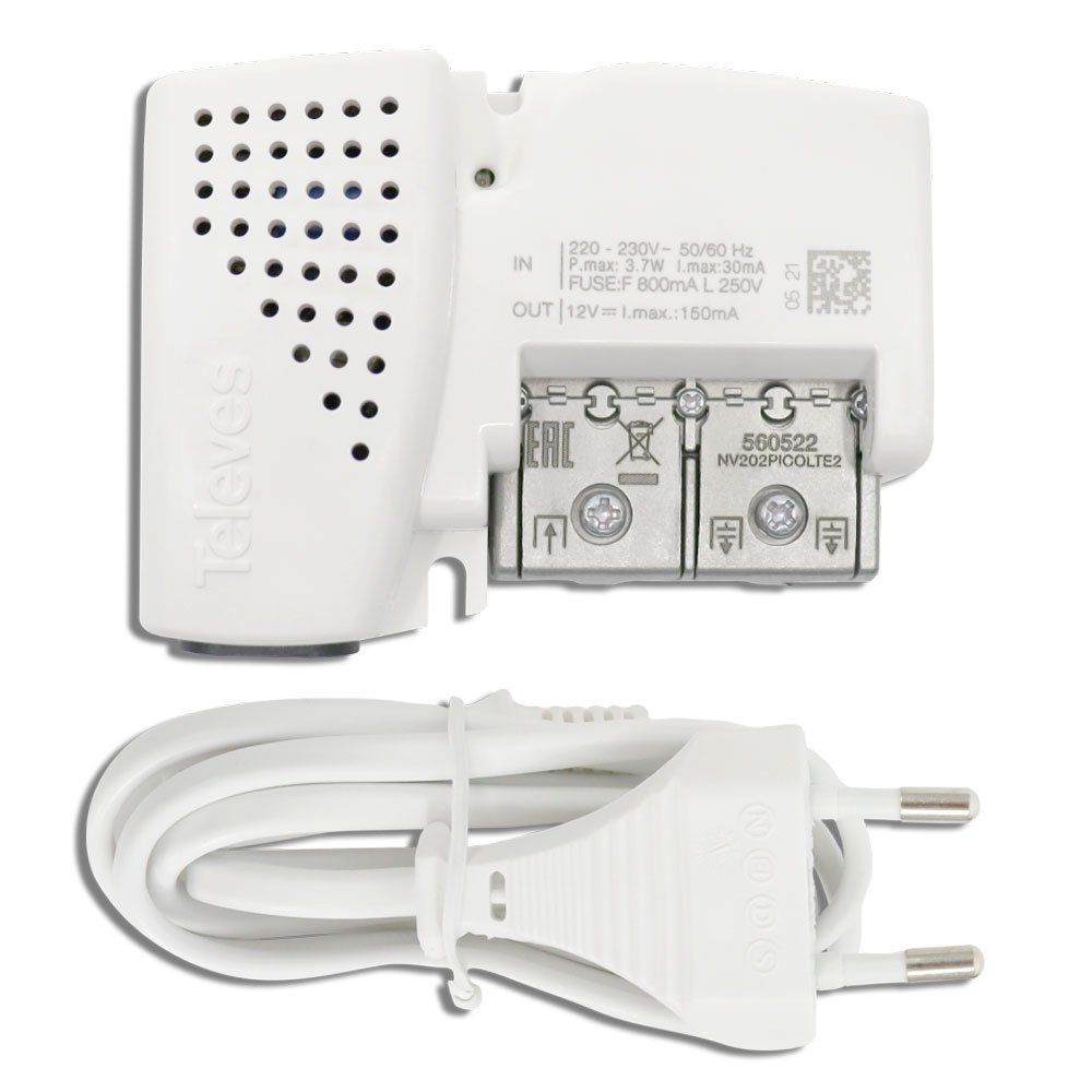 Amplificatore da interno da 2 uscite con regolazione automatica del guadagno, per ampliare l'impianto domestico televisivo terrestre. Incorpora il filtro LTE700/5G e l'alimentazione all'ingresso per preamplificatori o un sistema BOSS.