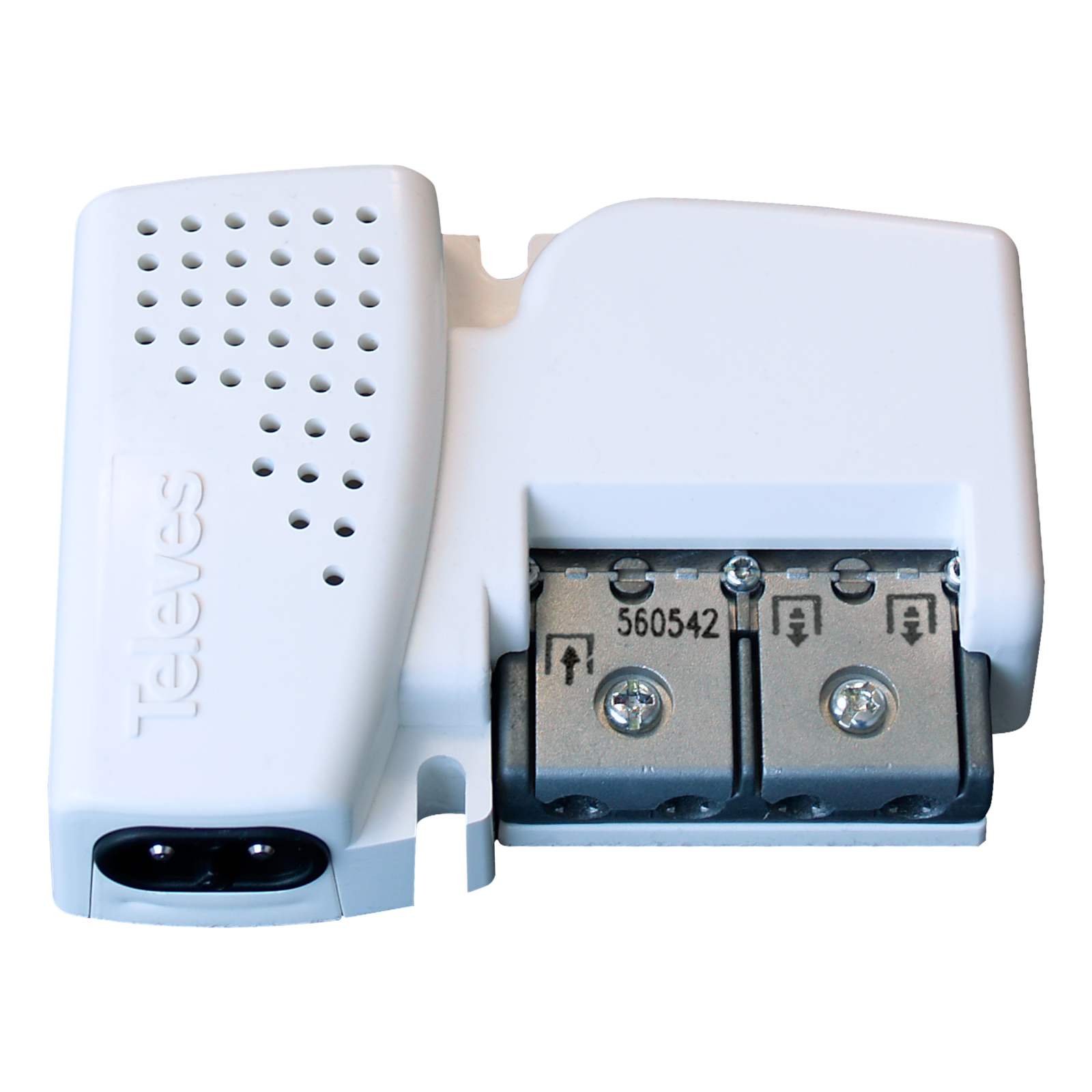 Amplificatore da interno PicoKom 2 uscite: VHF/UHF - LTE790 Ready Amplificatore da interno da 2 uscite con regolazione automatica del guadagno, per ampliare l'impianto domestico televisivo terrestre. Incorpora il filtro LTE790/4G e l'alimentazione all'ingresso per preamplificatori o un sistema BOSS.