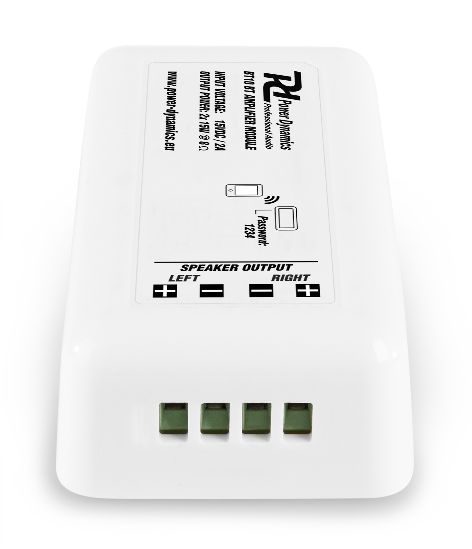 L'amplificatore audio stereo BT10 compatto e con una potenza di 60W (2x30W), consente di collegare e poter gestire in modalità Bluetooth, qualsiasi diffusore passivo a bassa impedenza(8Ohm), ed è perfetto per diffusori da soffitto e da parete. Il dispositivo può essere collegato a smartphone e tablet con connessione Bluetooth e tutta la musica riprodotta verrà trasmessa in streaming attraverso l'amplificatore 2x30W. Il volume è controllato tramite smartphone e tablet.