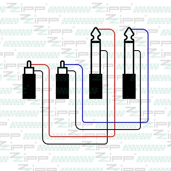 2 x RCA MASCHIO - 2 x JACK 6,3mm MONO (TS)