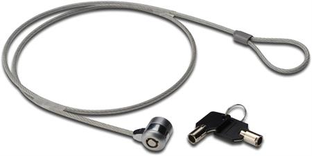cavo di sicurezza per pc/nb a chiave Universale e facile da utilizzare con qualsiasi computer portatile e desktop con lo slot di sicurezza integrato Fornito con 2 chiavi identiche in dotazione Materiale: Zinco-acciaio, Robusto dispositivo di bloccaggio con un cavo da 1,5 m in acciaio