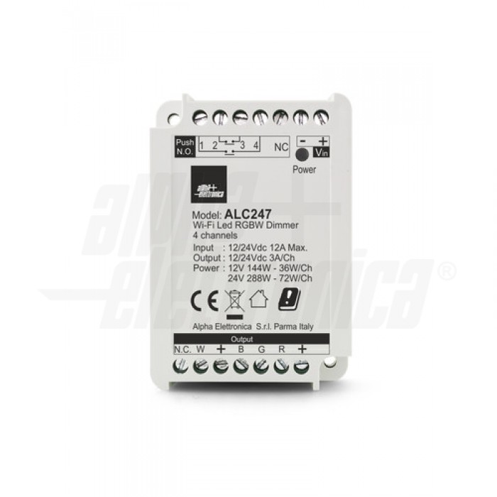 Controller LED RGBW 12/24V 12A max - 3A per canale - 4 canali - Comando Wi-Fi tramite App e pulsante