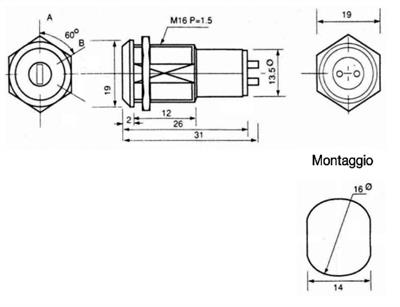 Tensione di lavoro 250Vca. Corrente 0,5A max. Chiave metallica nichelata ricoperta di plastica. Terminali a saldare. CHIAVE ESTRAIBILE IN TUTTE LE POSIZIONI