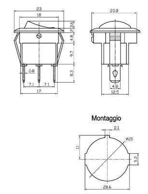 Tasto Nero Funzione ON-OFF-ON Tipo SPDT N. terminali 3 Portata 16A 12VDC Resistenza di contatto 50mΩ max Rigidità dielettrica 1 minuto 1500V AC Temperatura di esercizio -25°C~+85°C Tipo terminali faston 4,8mm Serigrafia ! 0 !!