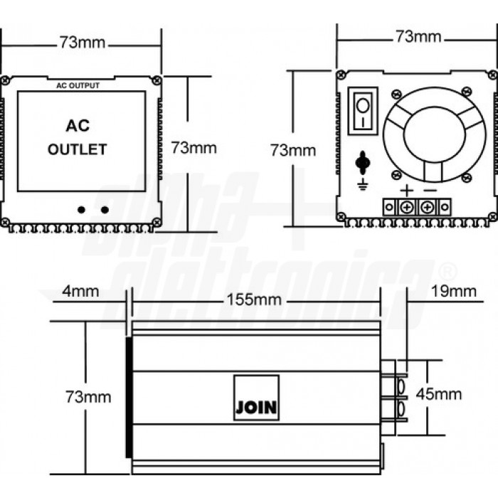 Avvertenze - Collegare direttamente alle batterie utilizzando i cavi in dotazione. - L'inversione di polarità di batteria danneggia il dispositivo. Danno non coperto da garanzia. - Non collegare l'uscita dell'inverter alla rete elettrica. Tale connessione danneggia l'inverter irrimediabilmente. Danno non coperto da garanzia. - Non collegare carichi altamente induttivi o capacitivi, come motori, lampade fluorescenti, frigoriferi, ecc. L'inverter potrebbe non funzionare correttamente fino a danneggiarsi. Danno non coperto da garanzia. Tensione d'ingresso 24 Vdc Potenza d'uscita nominale 350 W Forma d'onda in uscita Sinusoidale modificata Tensione d'uscita 230 Vac