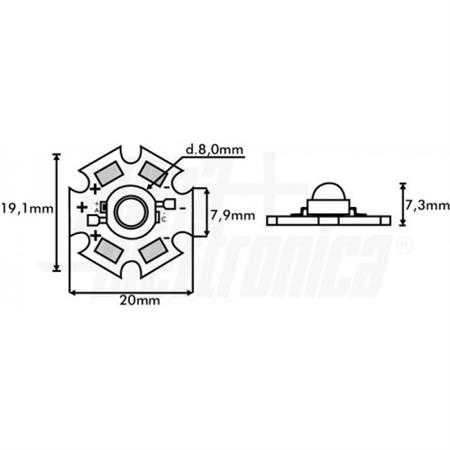Alimentatori consigliati: Da 1 a 4 led in serie: KL832-02 Per 5 led in serie: KL836-02 Tens. funzionamento DC 3.4Vdc (3-4Vdc) Colore Bianco freddo Potenza 1 W Flusso 75 lm Angolo di emissione 140 ° Diametro 19,1 mm Temp. Colore 6000K CRI 70 % Tipo di led Star