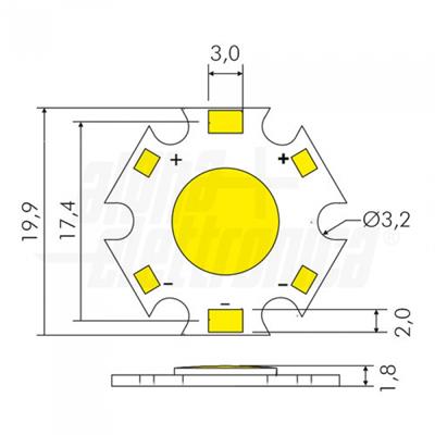 Alimentatori consigliati: Da 1 a 3 led in serie: KL824-02 Tens. funzionamento DC 16Vdc (15.5-17Vdc) Colore Bianco freddo Potenza 5 W Flusso 500 lm Angolo di emissione 120 ° Diametro 19,9 mm Temp. Colore 6000K CRI 70 % Tipo di led COB