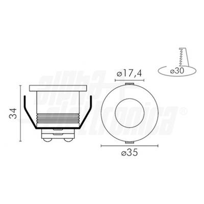Attenzione Alimentazione in corrente costante. Usare solo l'alimentatore in dotazione. Alimentatori errati danneggiano il prodotto. Tens. funzionamento DC 3Vdc Colore Bianco caldo Potenza 2,5 W Flusso 130 lm Angolo di emissione 30 ° Numero cicli di accensione 15000 Tempo di vita 30000 h Altezza 34 mm Colore corpo Bianco Diametro 35 mm Foro incasso ø30mm Grado di protezione IP20 Starting time 0,2 s Temp. Colore 3000K CRI 80 % Tipo di led Cree XT-E Etichetta energetica A+