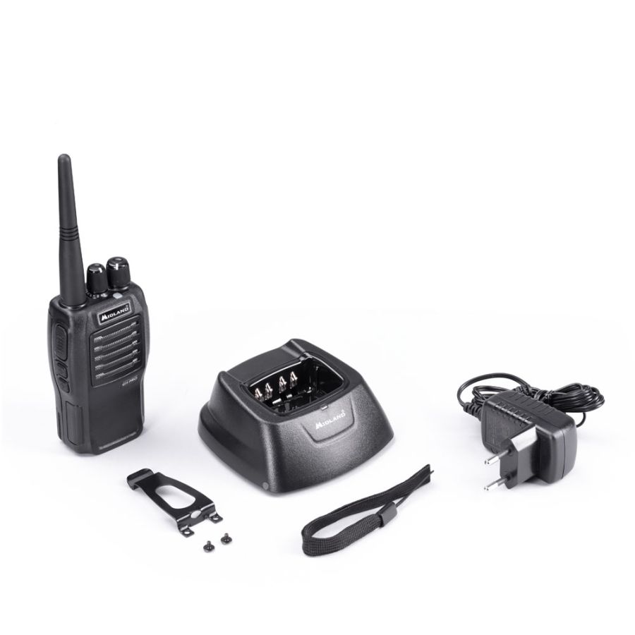 -Ricetrasmettitore con clip a cintura -Caricatore da tavolo adattatore da muro -Pacco batteria Li-Ion 1600mAh