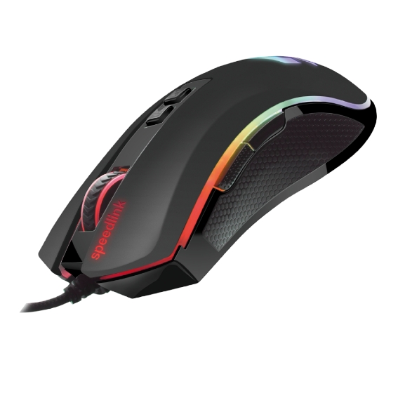 Mouse USB da gioco con illuminazione RGB | illuminazione configurabile per bordo, logoe rotella con 16,7 milioni di colori | 7 tasti programmabili per macro | esclusivo sensore dagioco Pixart 3325 con 5.000dpi (fino a 10.000dpi interpolati) | polling rate a 1.000Hz |memoria on board per 5 profili | superficie gommata per una presa perfetta | pad scorrevoliultra lisci sulla base | interruttore dpi | connessione: USB-A | dimensioni: 128 × 70 × 39mm(L × P × A) lunghezza cavo: 1,8m | peso: 95g