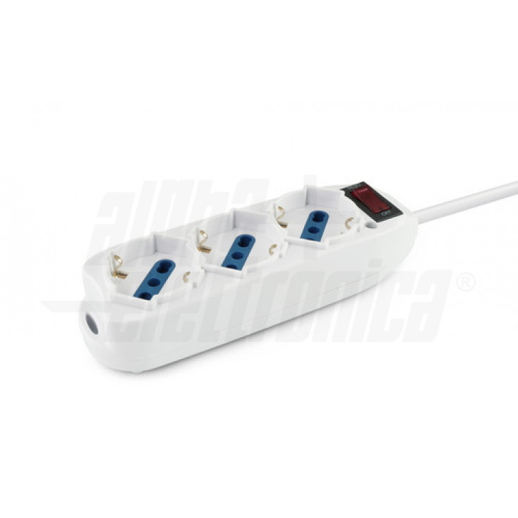 -N. prese Universali 2P+T 10/16A 3 -Tipo di prese Universale Italia P40 -Numero di Prese Totali 3 -Tipo di spina Italia 10A 2P+T S11 a 90° -Colore BIANCA -Prese 3 Universali 2P+T 10/16A -Accensione Con interruttore luminoso -Cavo 1,5 m -Tensione max 250 V