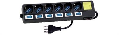 MULTIPRESA ELET.6VIE SCHUKO/BIVAL. CON 6 INTER+1 MASTER NERA GBC