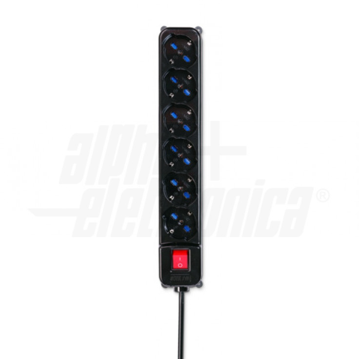 MULTIPRESA CON INTERRUTTORE 6 PRESE UNIVERSALI ITALIA P40, CAVO 1,5MT SPINA 16A a 90° - NERA