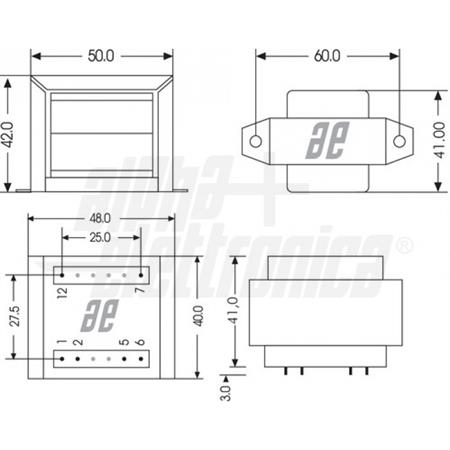 Trasformatore per PCB 10W - 6+6V Utilizzo Adatto per montaggio a circuito stampato o a pannello Vin Vout Iout 230 Vac 6 Vac 1660 mA 230 Vac 12 Vac 830 mA