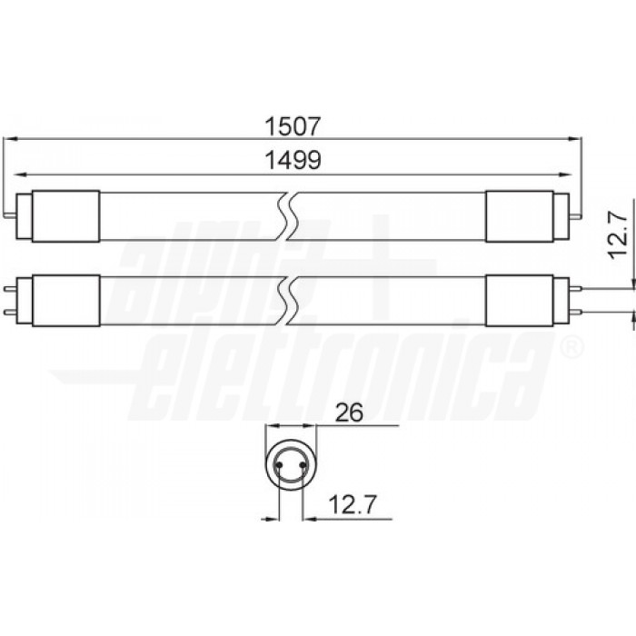 Note Il tubo in vetro é ricoperto da una pellicola plastica di sicurezza utile ad evitare la dispersione dei frammenti in caso di rottura. Tens. funzionamento AC 230Vac Attacco G13 Colore Bianco naturale Potenza 24 W Flusso 2400 lm Angolo di emissione 300 ° Numero cicli di accensione 15000 Tempo di vita 30000 h Diametro 26 mm Grado di protezione IP20 Lunghezza 1500 mm Temp. Colore 4000K CRI 80 % Tipo di led smd 2835 Etichetta energetica A+